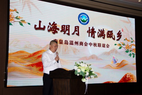 随后,在热烈的掌声中,会长兼党支部书记叶永鹏上台发表了热情洋溢的致辞:“在这个月圆人团圆的美好时刻,我们欢聚一堂,共迎中秋传统佳节。在此,我代表秦皇岛温州商会向前来参加此次中秋联谊活动的各位领导、嘉宾及会员朋友们表示热烈的欢迎并致以最诚挚的节日问候和祝福!
