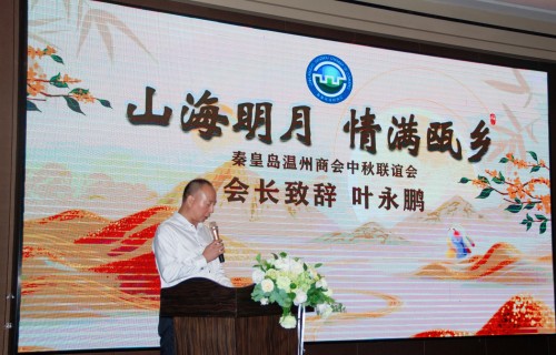 随后,在热烈的掌声中,会长兼党支部书记叶永鹏上台发表了热情洋溢的致辞:“在这个月圆人团圆的美好时刻,我们欢聚一堂,共迎中秋传统佳节。在此,我代表秦皇岛温州商会向前来参加此次中秋联谊活动的各位领导、嘉宾及会员朋友们表示热烈的欢迎并致以最诚挚的节日问候和祝福!